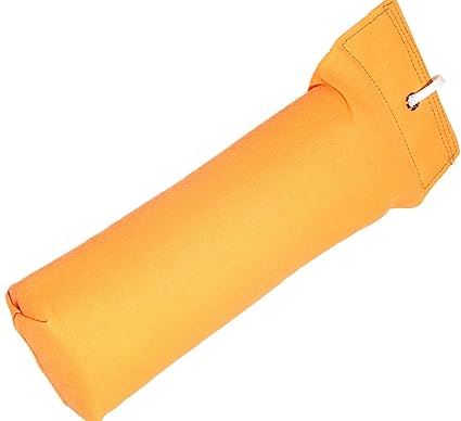 1lb quality canvas with plastic throwing toggle. Very good value. Bright Orange for easy marking when the dog is learning.
