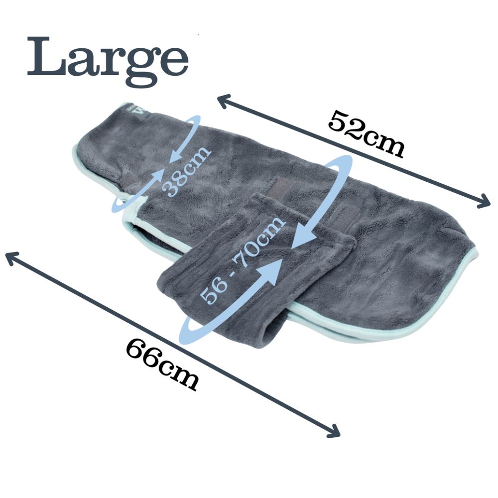 Versatile Usages: Furthermore, the Microfibre Drying Coat is ideal for use following wet hikes, swimming, or bathing. Simple to put on, with a strap over the tummy that secures the coat in place. In addition, it has a lead/harness slot on the back seam for convenience.