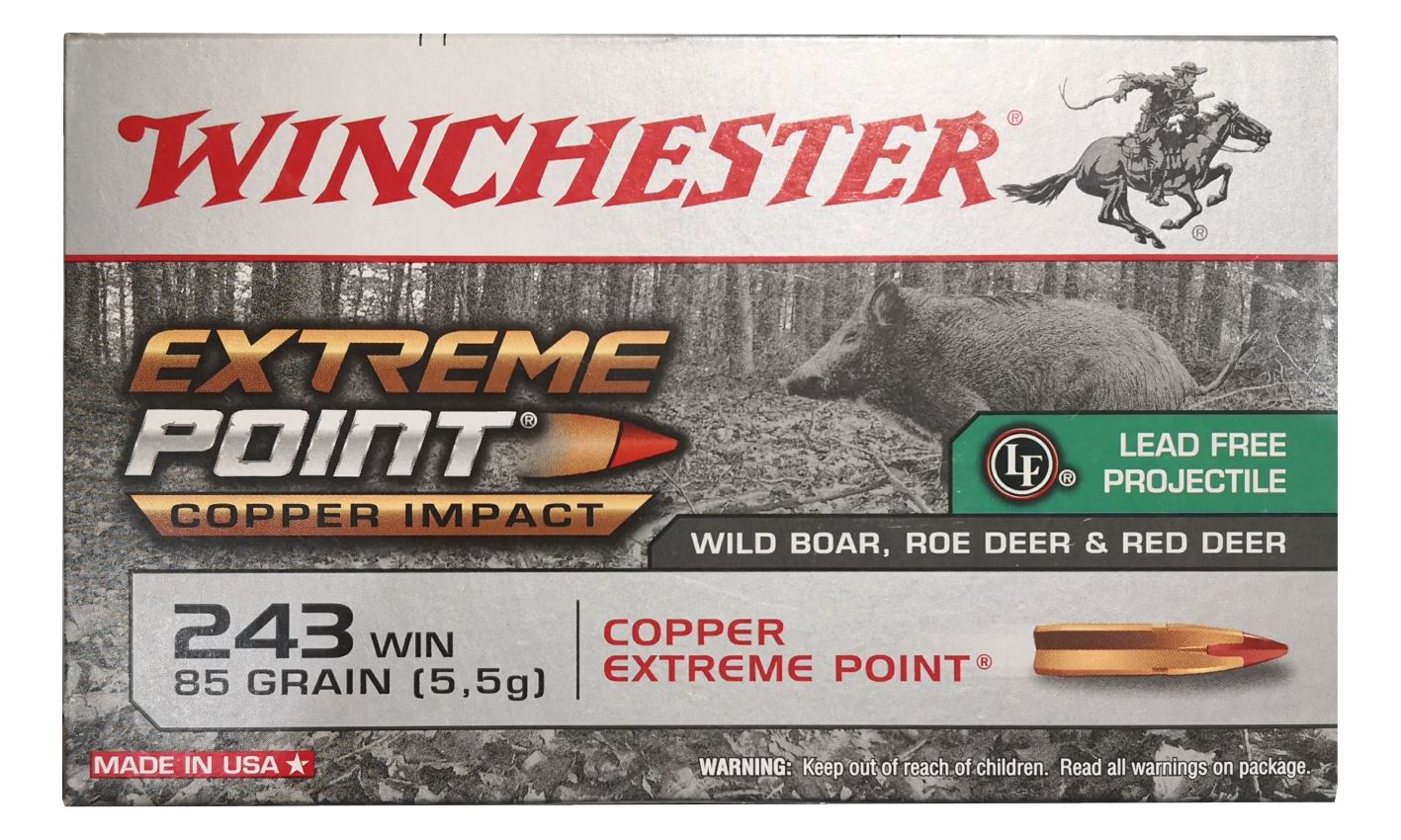 Winchester .243 Extreme Point Copper Impact, 85 Grain Lead Free Projectile.